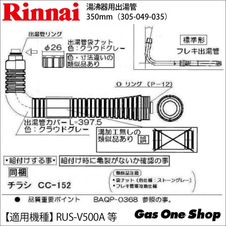 リンナイ 湯沸器用 出湯管 350mm Ru 0191 305 049 035 Rus V500a用