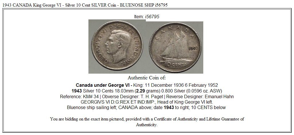 1943 Ca 1943 Canada King George Vi Ar 10 Cent Silver Co Coin