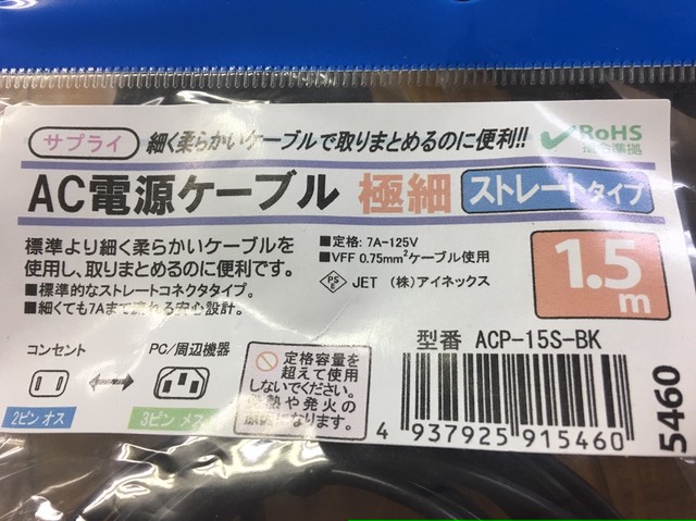 Ainex Ac電源ケーブル 極細ストレートタイプ Acp 15s Bk Tm8 Blog