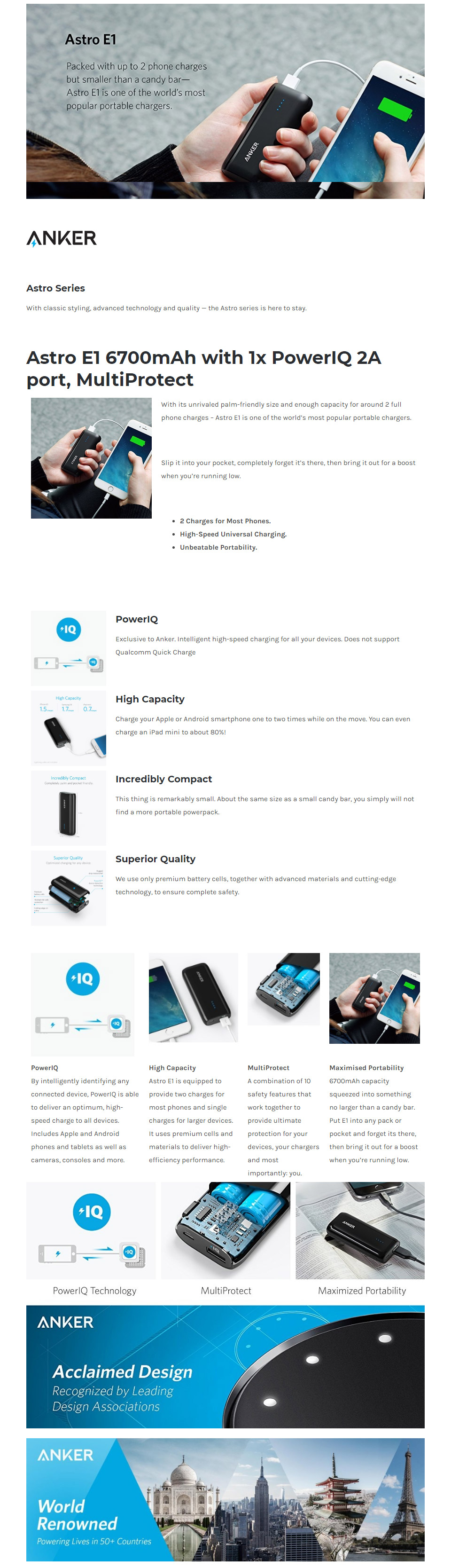Candy bar sized 6700mah ultra compact portable charger external battery power bank with high speed charging poweriq technology. From anker americas leading usb charging brand 10 million happy users and counting faster and safer charging with our advanced technology poweriq exclusive to anker. Anker upgraded to 6700mah astro e1 candy bar sized ultra compact portable charger external battery power bank with high speed charging poweriq technology 46 out of 5 stars 470 2399.