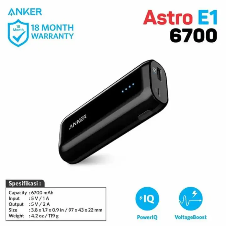 Pin dự phòng anker astro e1 6700mah a1211 giá ban đầu 550000 màu sắc đen. We created anker to make the smart life simpler. And unusually for a smaller portable charger it offers a fast charging current of 2a comparable to a wall charger.