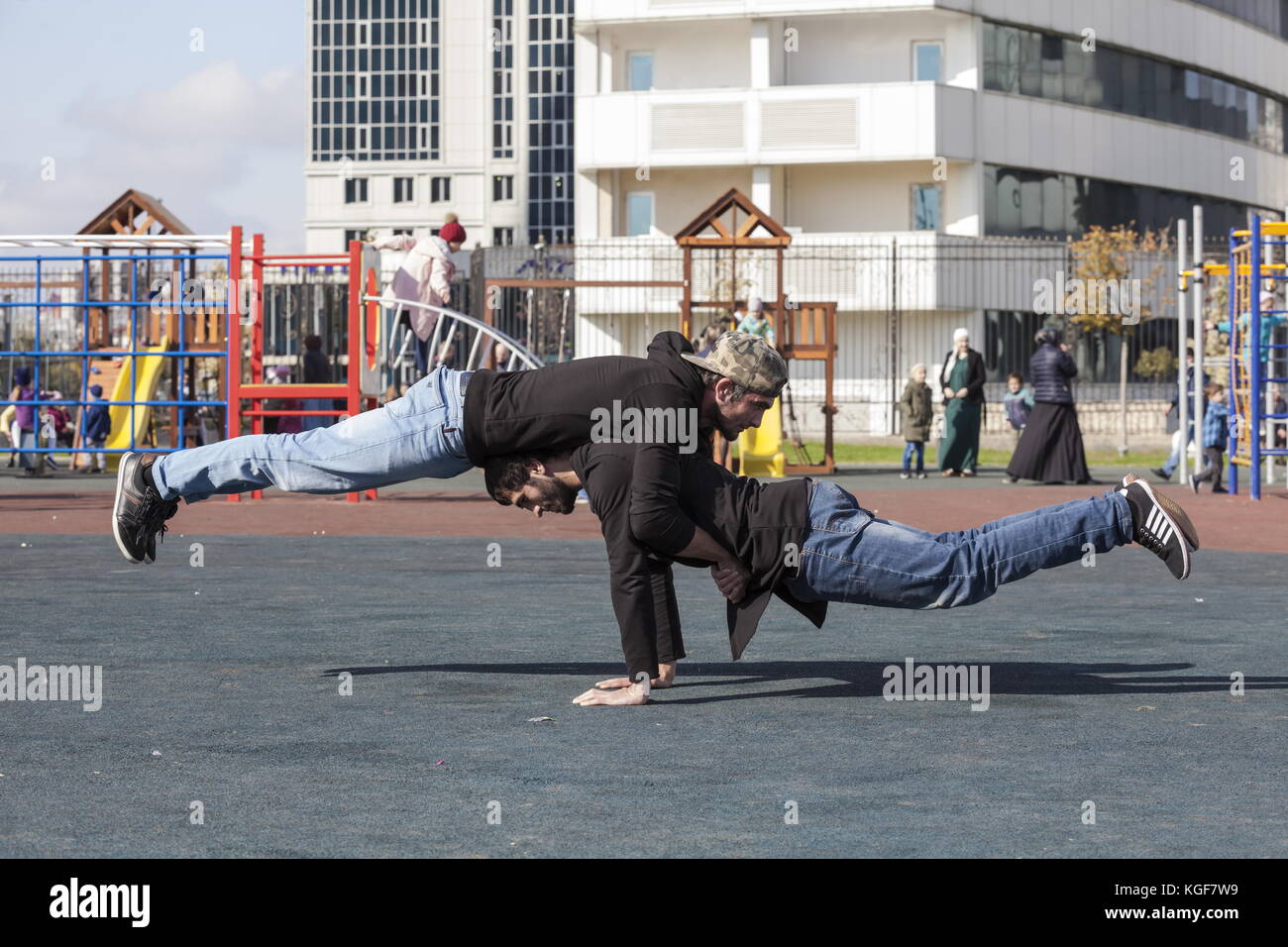 Grozny Russia October 28 2017 Traceurs Practice At A