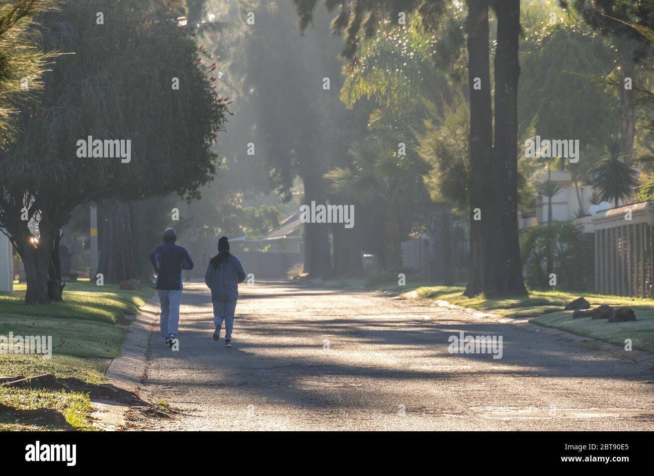 Alberton South Africa Unidentified Couple Out Jogging In The Early Morning Sunshine During An Exercise Break In The National Lockdown Period Stock Photo Alamy