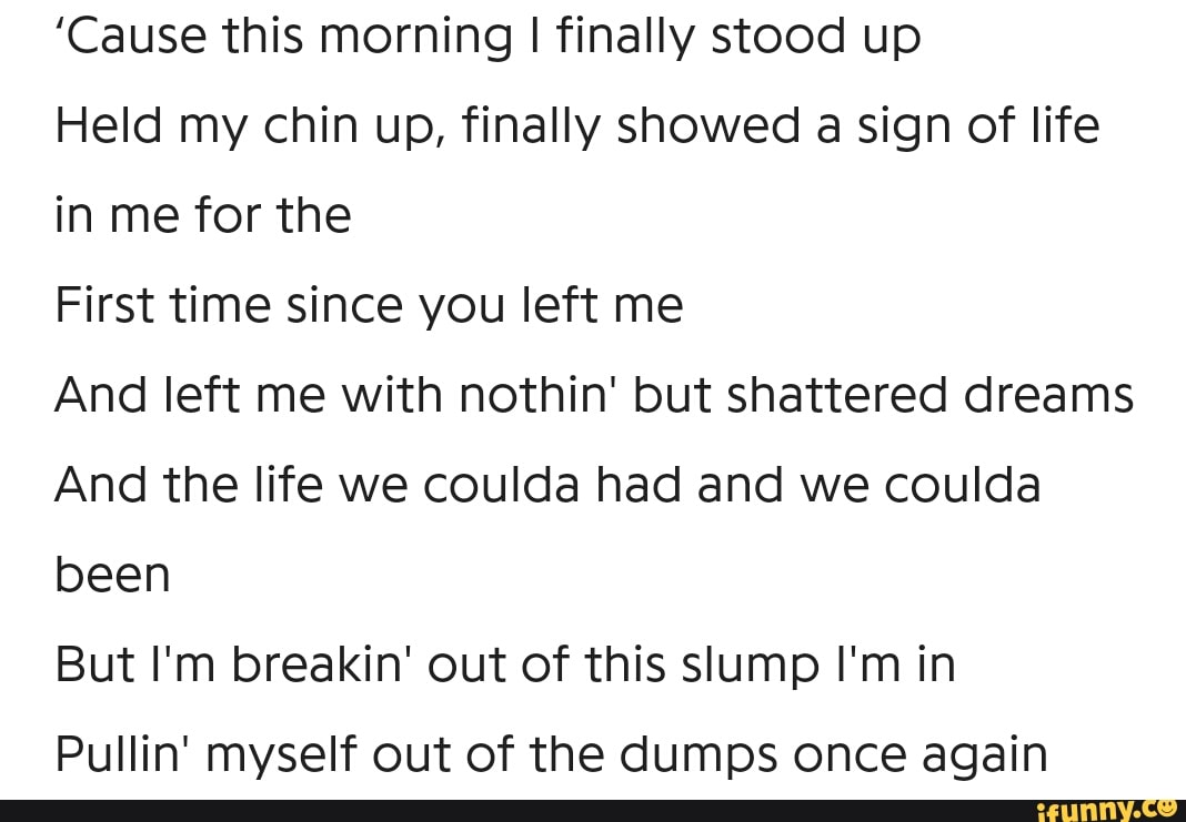 Cause This Morning I Finally Stood Up Held My Chin Up Finally Showed A Sign Of Life In Me For The First Time Since You Left Me And Left Me With Nothin