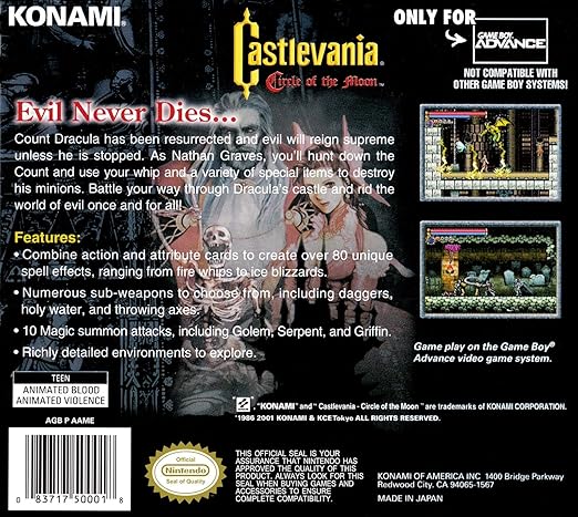 Amazon Com Gameboy Advance Castlevania Circle Of The Moon Case