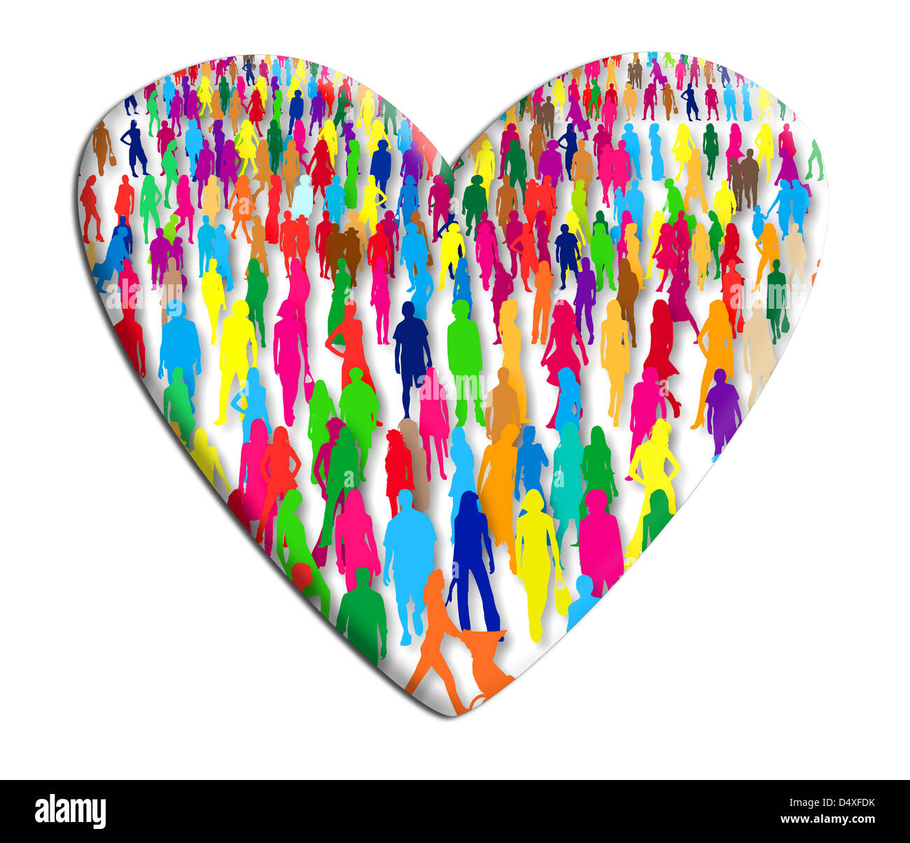A Crowd Of People Of All Colors In A Heart In Relief On White