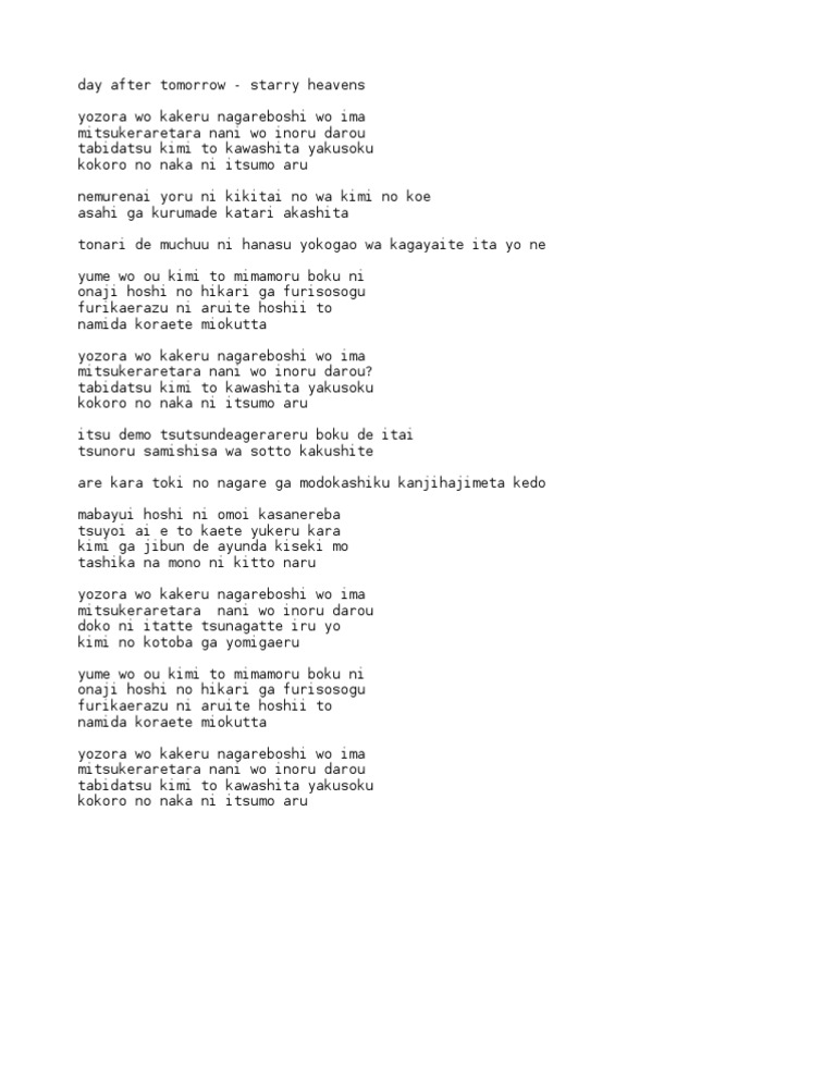 Starry Heavens Day After Tomorrow Lyrics Song Meanings Videos
