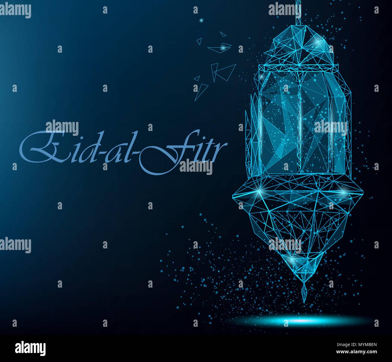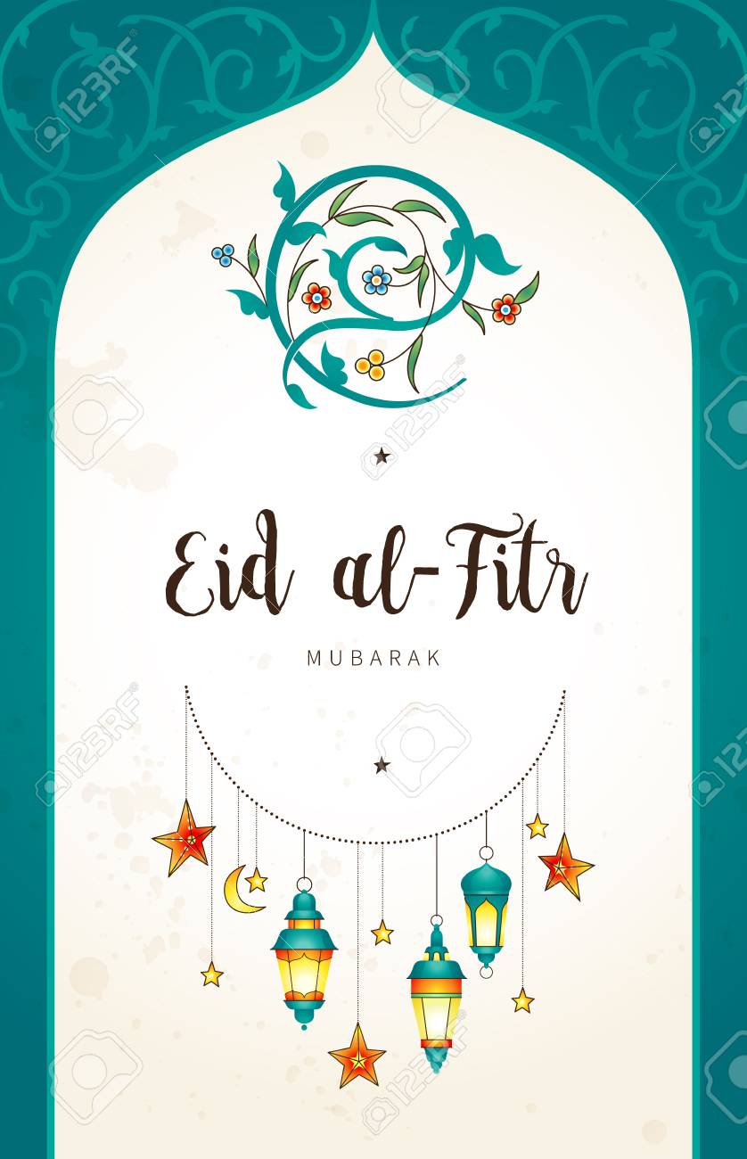 Vector Eid Al Fitr Mubarak Card Banner With Lanterns Calligraphy