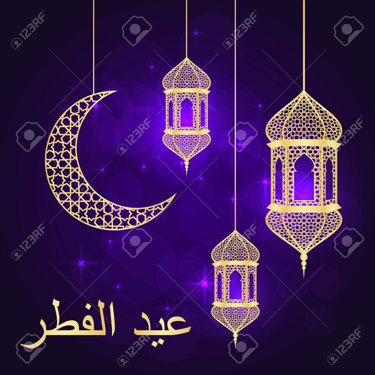 Eid Al Fitr Greeting Card On Violet Background Vector