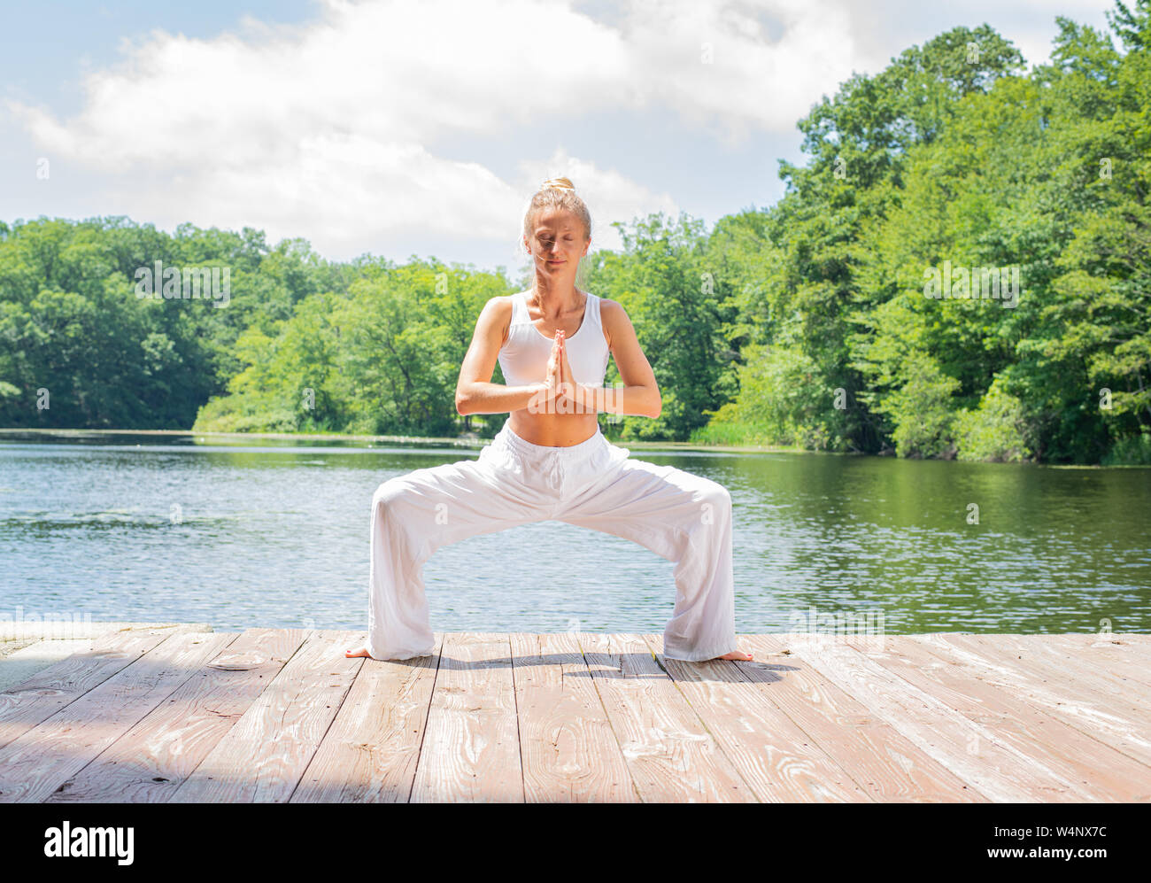 Attractive Young Woman Is Practicing Yoga Doing Stupasana