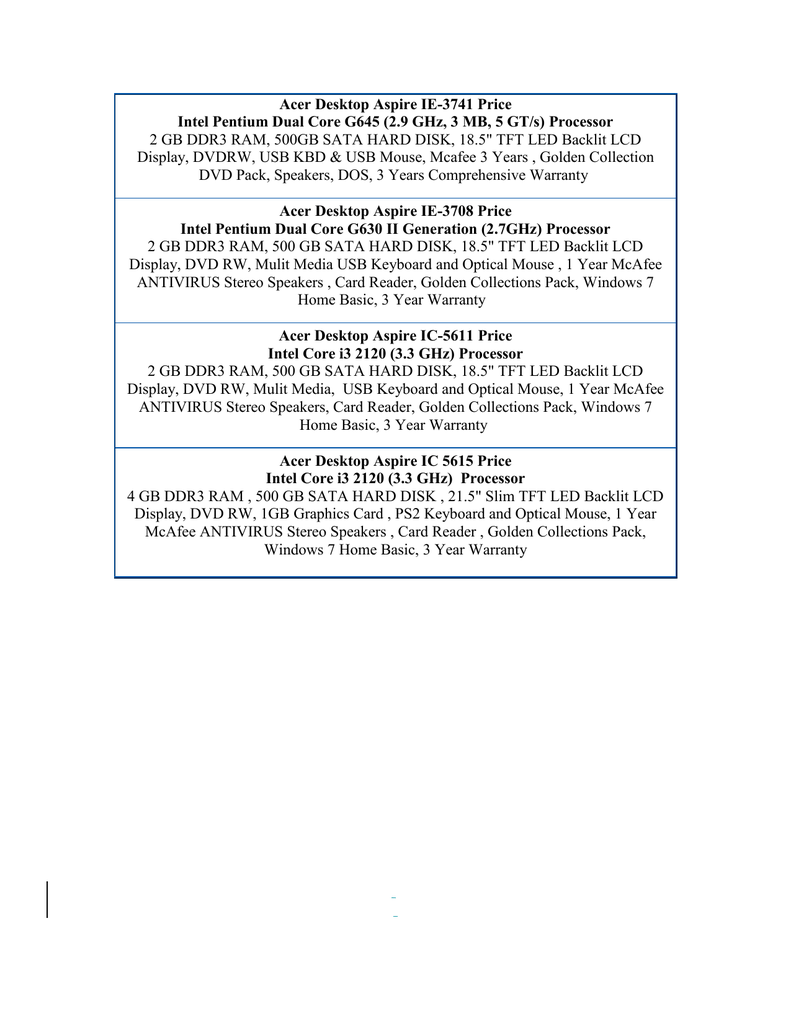 Acer Desktop Aspire Ie 3741 Price Intel Pentium Dual Core G645 Manualzz