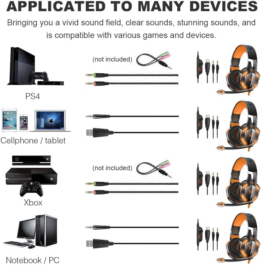 Amazon Com Ps4 Gaming Headset Kingtop Xbox One Led Lighting