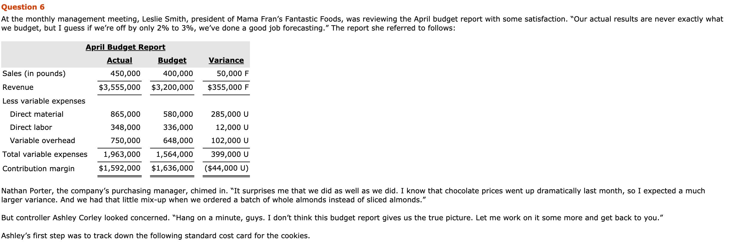 Solved Question 6 At The Monthly Management Meeting Lesl
