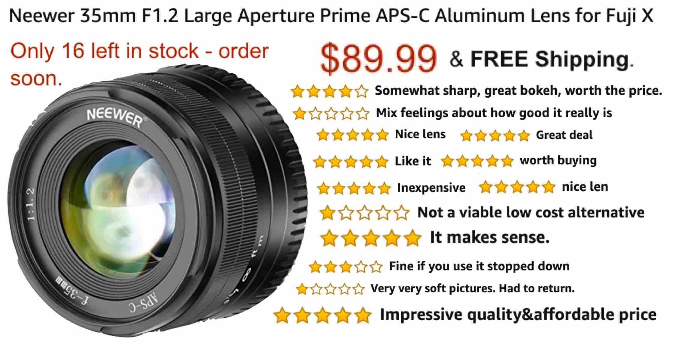 Neewer 35mm F 1 2 Lens For Fujifilm X Mount Available For 119