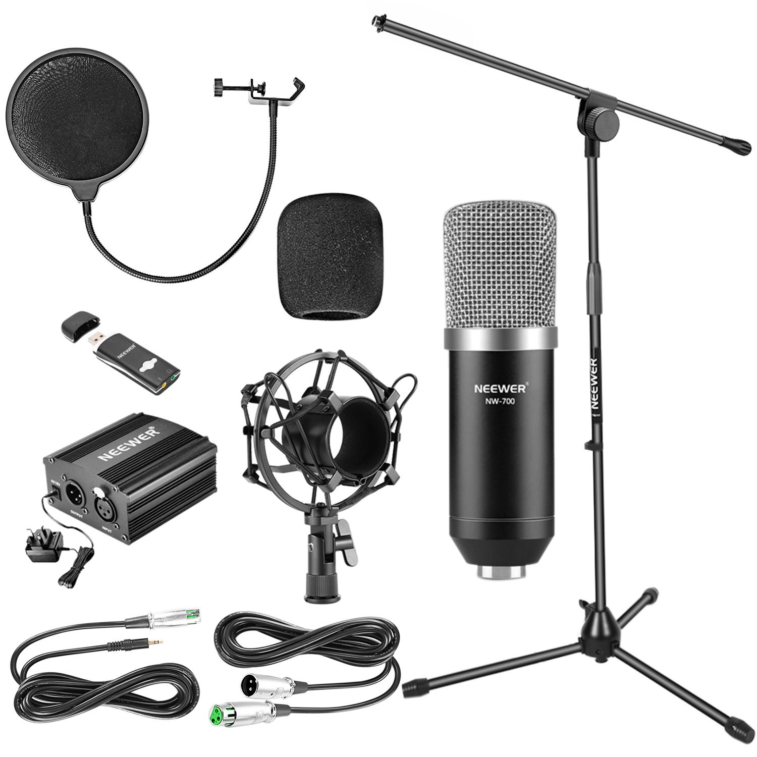 Neewer Nw 700 Condenser Mic Kit With Usb 48v Phantom Power Supply