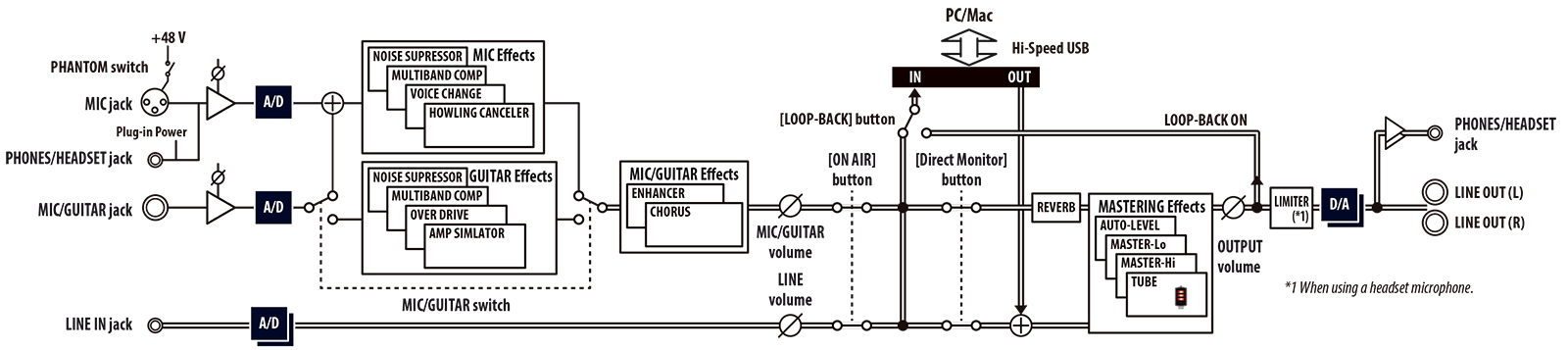 ギター 歌配信に最適なエフェクター内蔵の生放送インターフェース