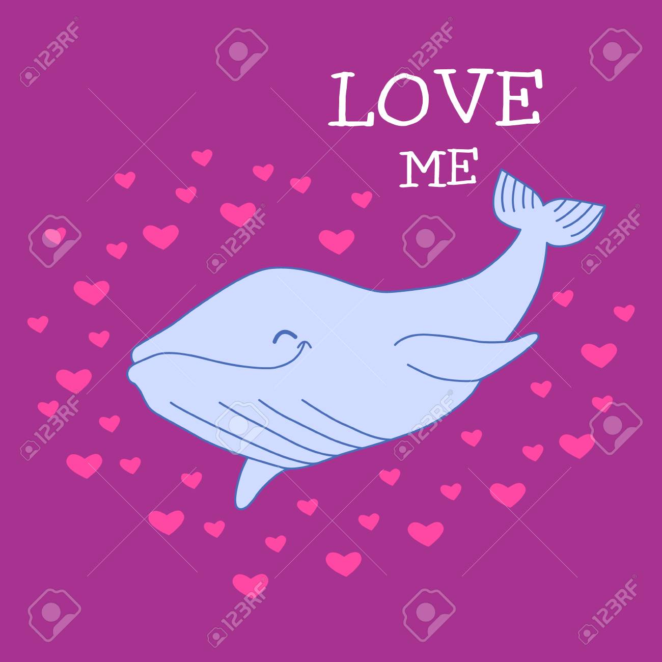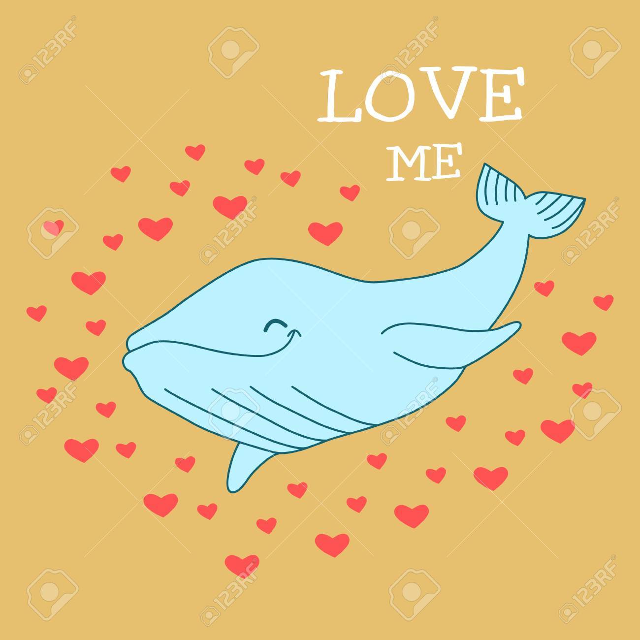 Whale On Sand Background With Hearts And The Words Love Me Summer