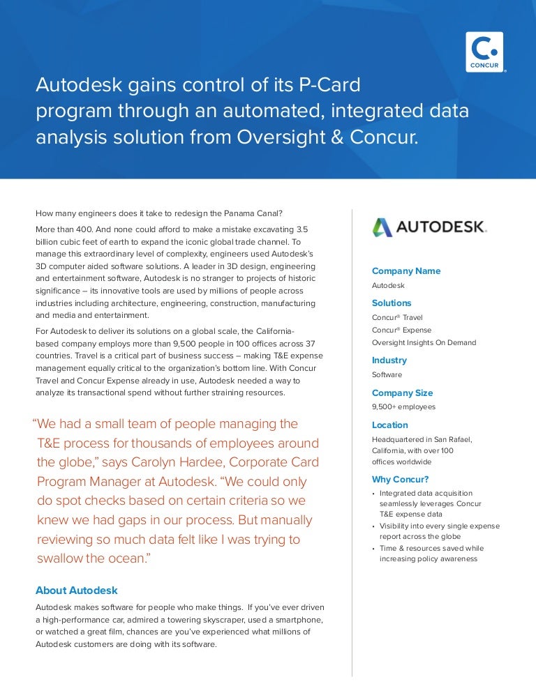 Take Control Of T E Spending With Oversight And Concur Autodesk Succ