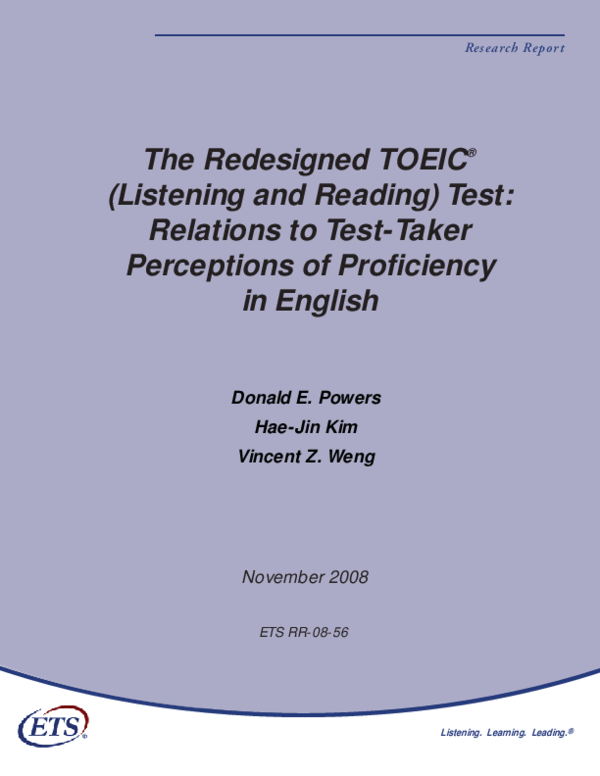 Pdf The Redesigned Toeic Listening And Reading Test Relations