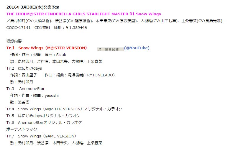Deresute デレステ Eng On Twitter The First Starlight Master Cd Is Coming Out 3 30 It Includes Snow Wings 2 Original Songs Sung By Uzuki And Rin Https T Co 1fp1riy0um