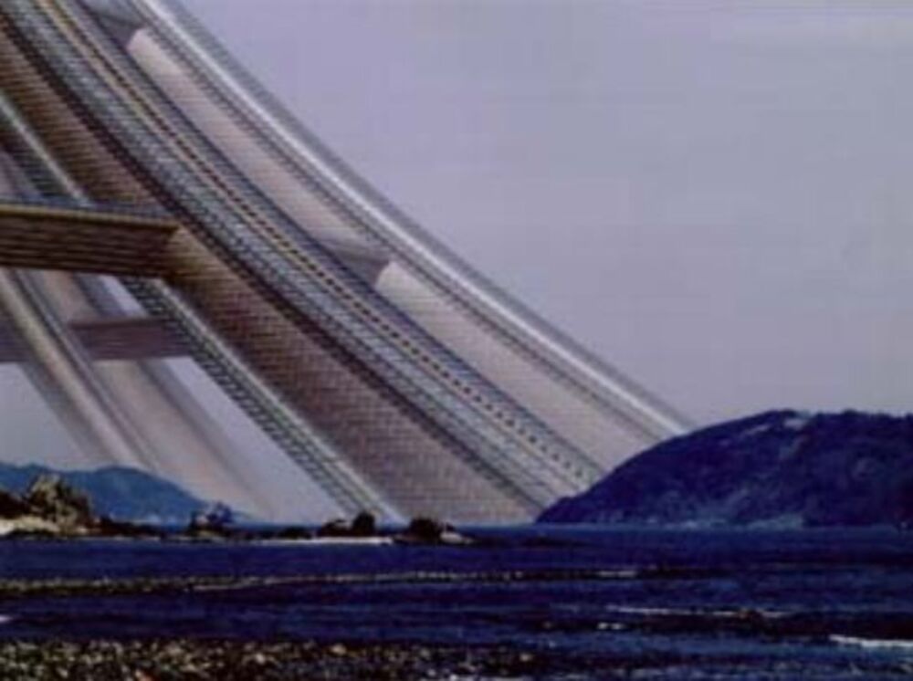 A 4km 25mi high eco utopian environment comprising over 800 floors in the open framework of a concave cone shape aesthetically resembling mt fuji. Its proposed 4 kilometre 25 mi height 6 kilometre wide 37 mi sea base and 800 floor capacity could accommodate 500000 to 1000000 inhabitants. It was designed for tokyo japan by the taisei corporation in 1995.